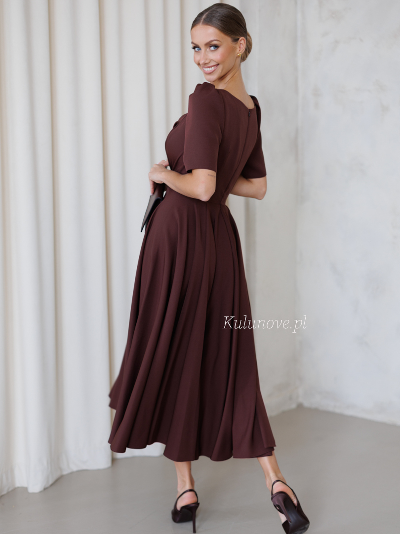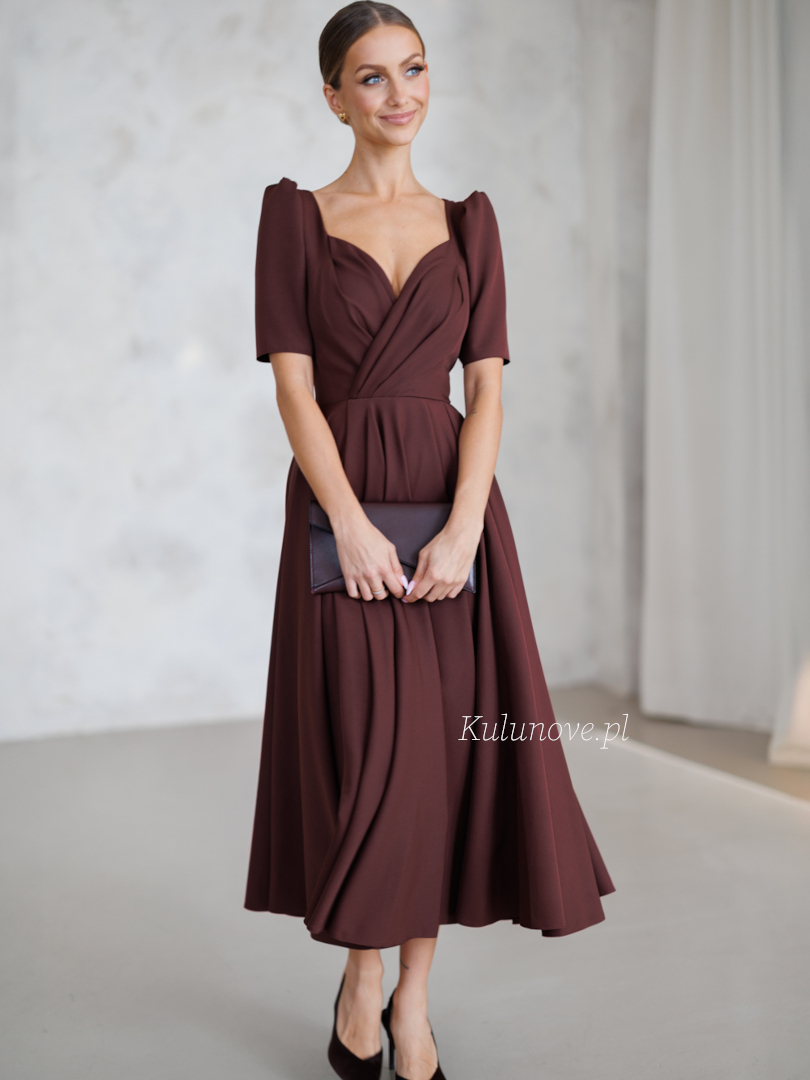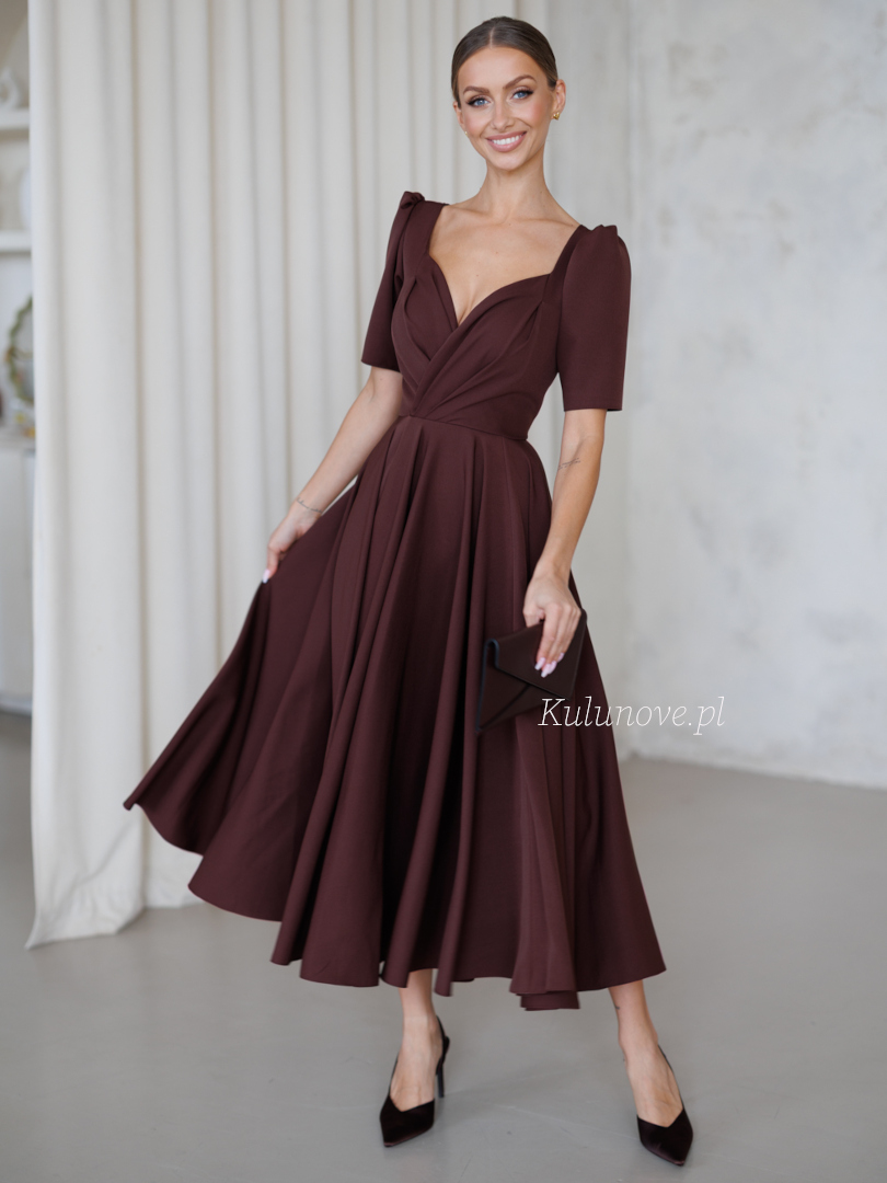 Chocolate Tina midi delights with its warm hue and subtle form.