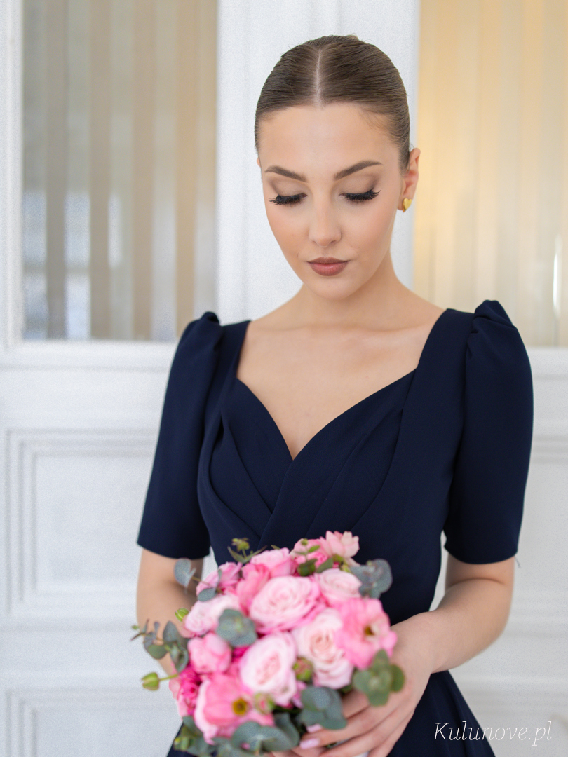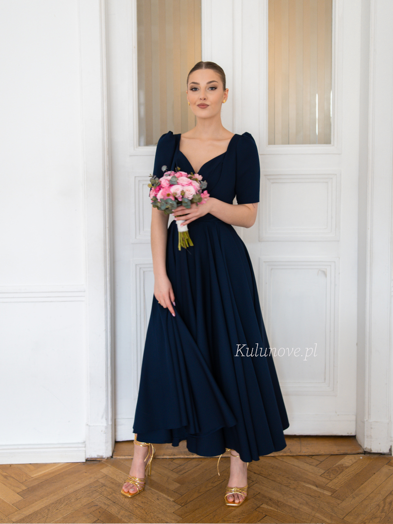 Navy blue midi dress is a versatile and extremely stylish option for special occasions.