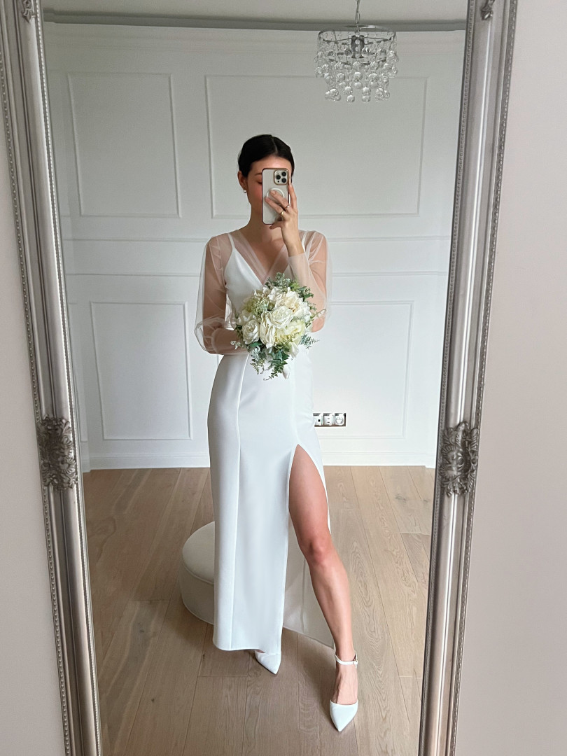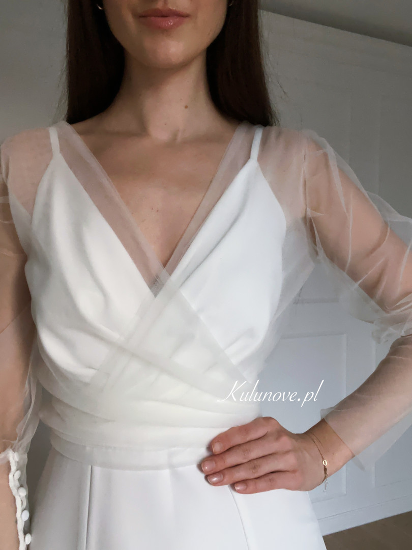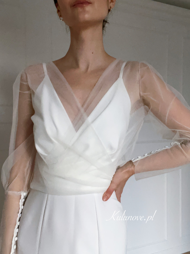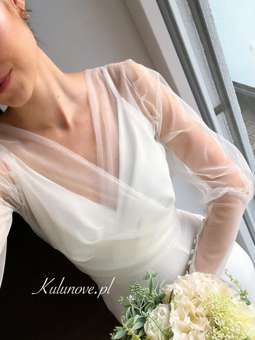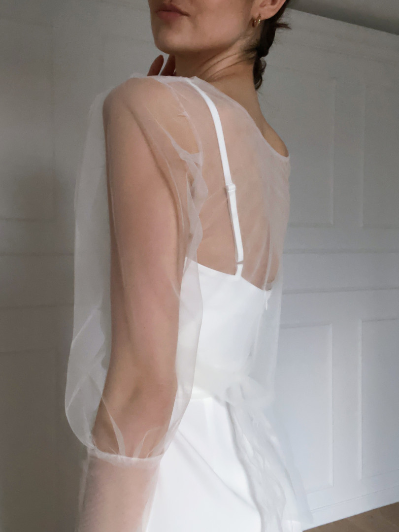 This garment will match in color with most of our models in ivory, cream and ecru.