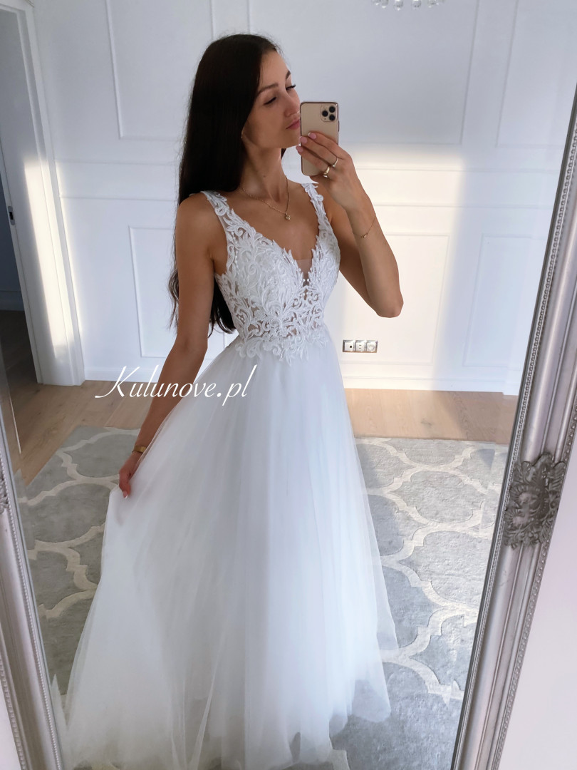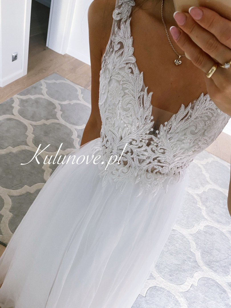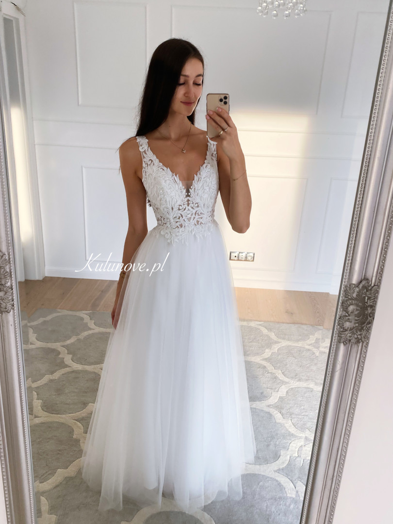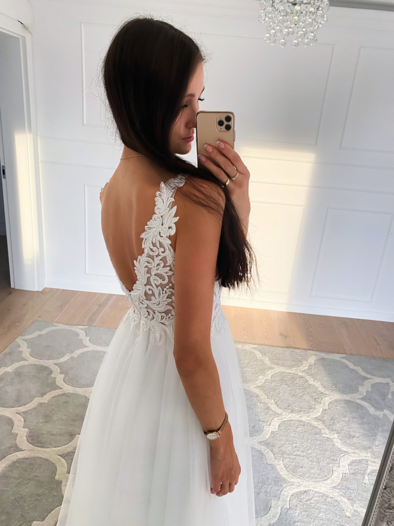 Please take special care when fastening the dress. We suggest that you make sure that the tulle is evenly aligned and not too close to the zipper before fastening. Attention to this detail will help avoid accidental damage and prolong the life of the product.