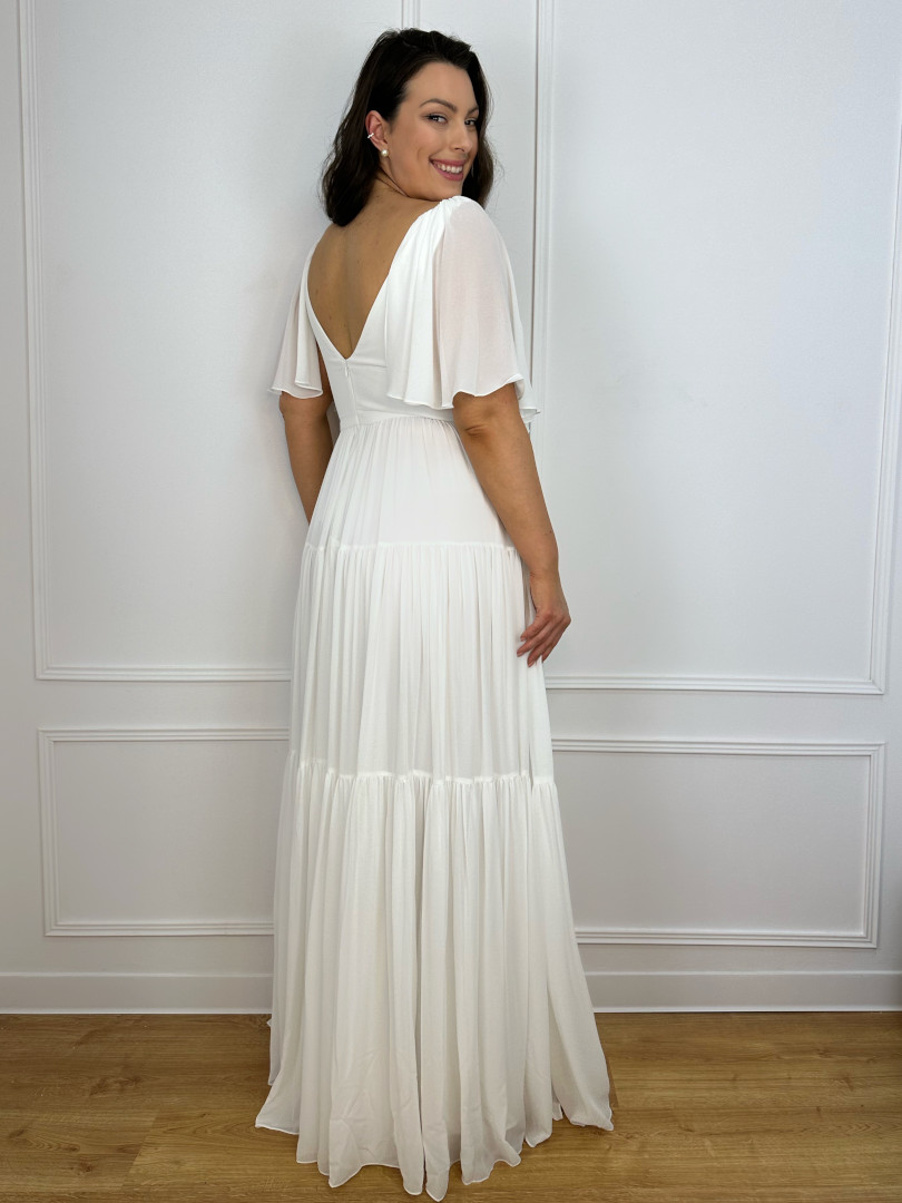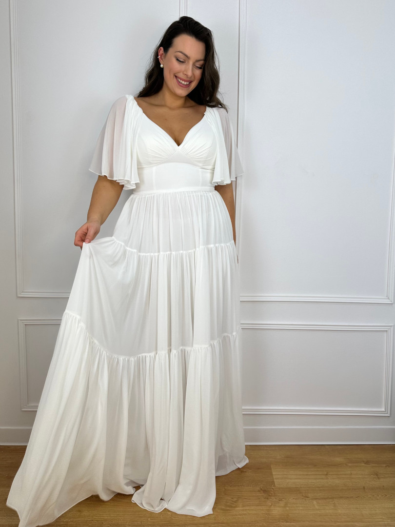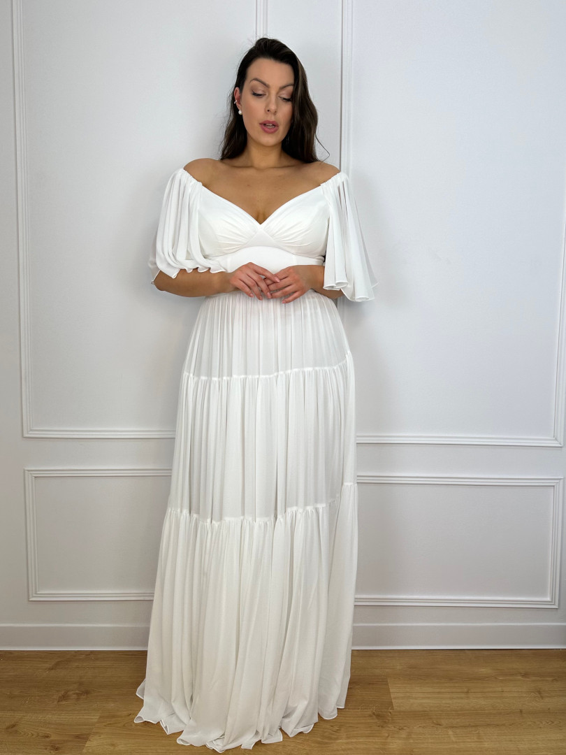The sleeves can be gently slid down, giving the dress a Spanish style.